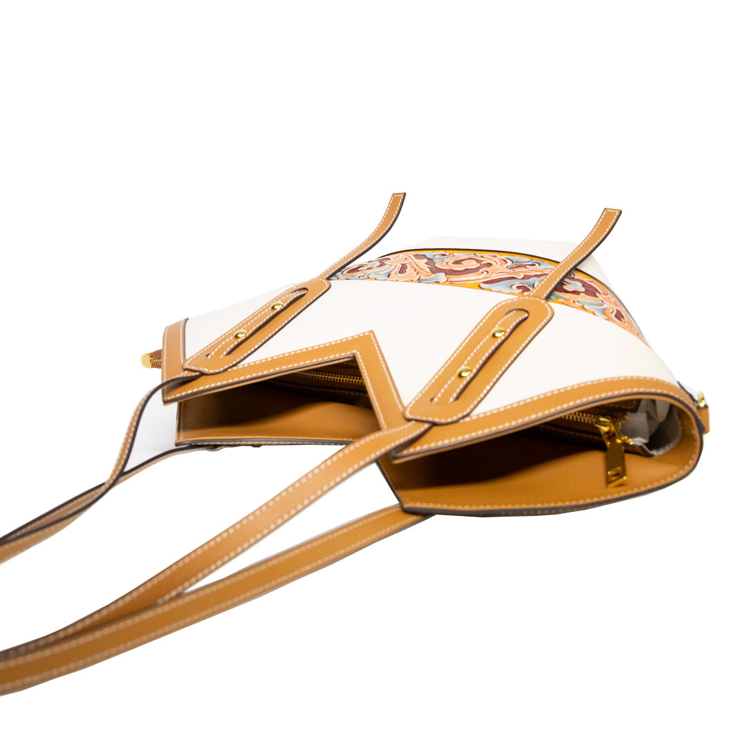 Cordate Handmade Leather Carving Bag White Women Fashion Bag